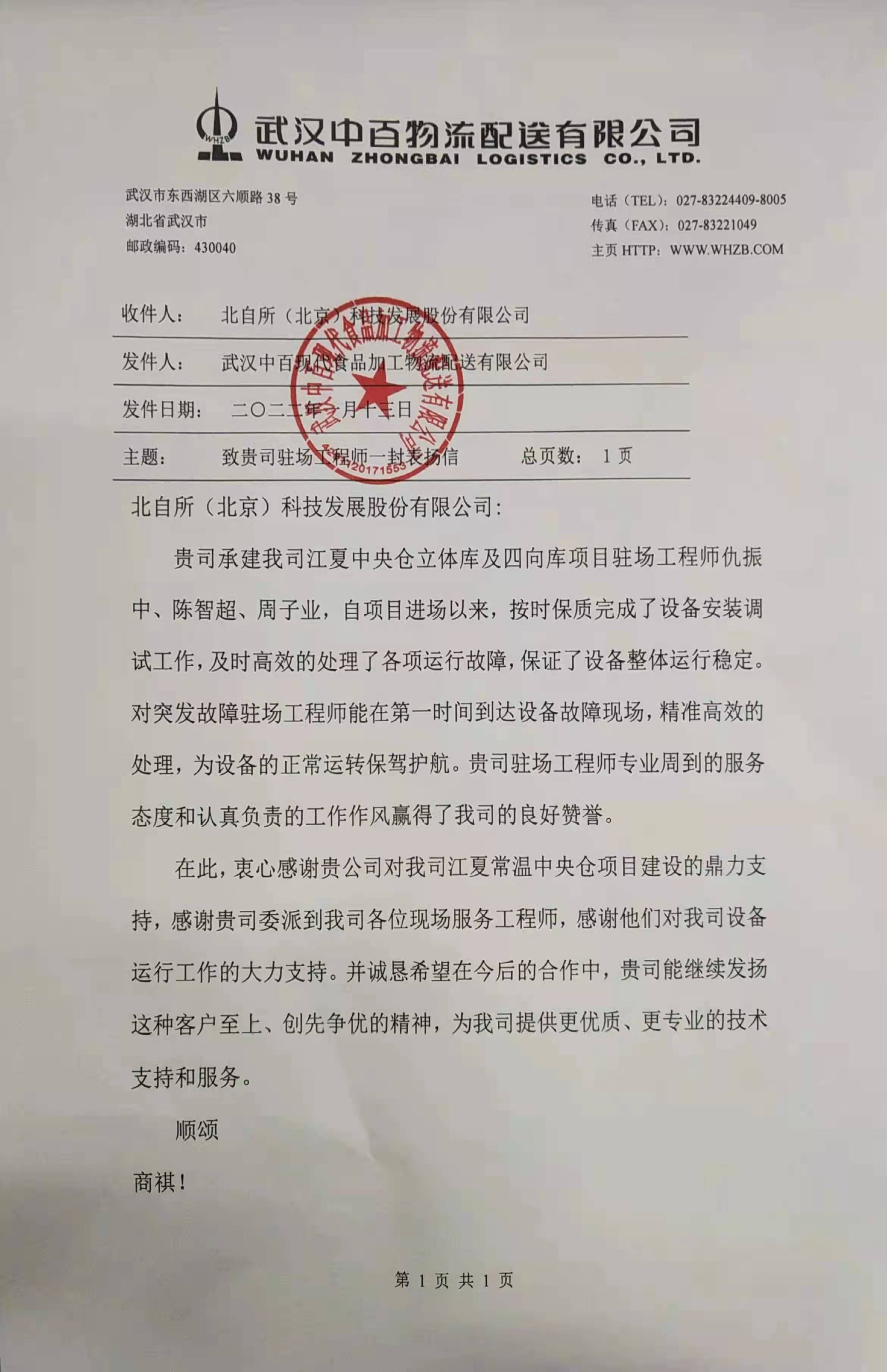此時此刻,北自科技的駐場工程師們正忙碌在各個一線項目現場,他們及時高效的處理各項運行故障,保證設備整體運行穩定,為設備的正常運轉保駕護航。這封感謝信既是肯定,也是激發我們前行的動力。北自科技將以此為標準,不斷進取,以實際行動踐行為客戶“交付美好”的企業理念。