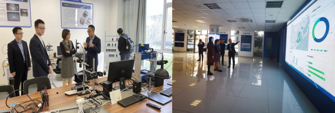 首先,潘總帶領(lǐng)王處等人參觀了基地的人才培養(yǎng)培訓(xùn)中心、智能設(shè)計(jì)與仿真應(yīng)用研究室、機(jī)器視覺(jué)研究室、智能制造診斷平臺(tái)。