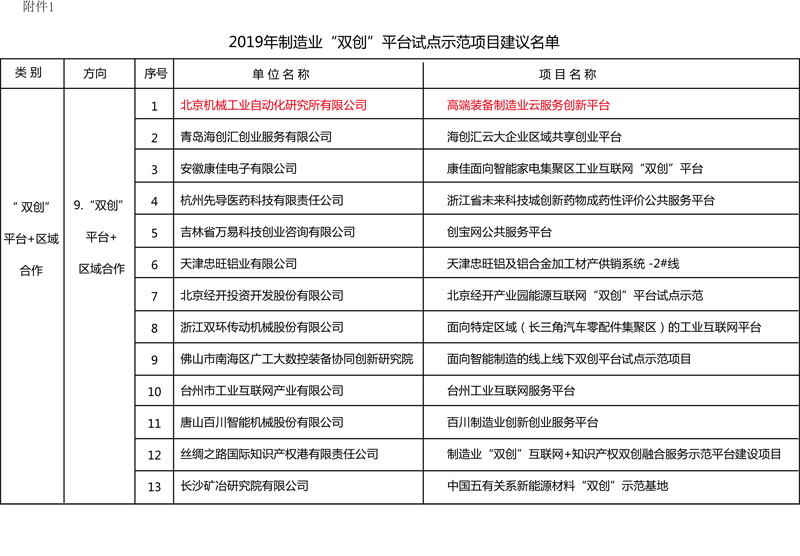 北自所項(xiàng)目成功入選2019年制造業(yè)“雙創(chuàng)”平臺(tái)試點(diǎn)示范項(xiàng)目公示名單