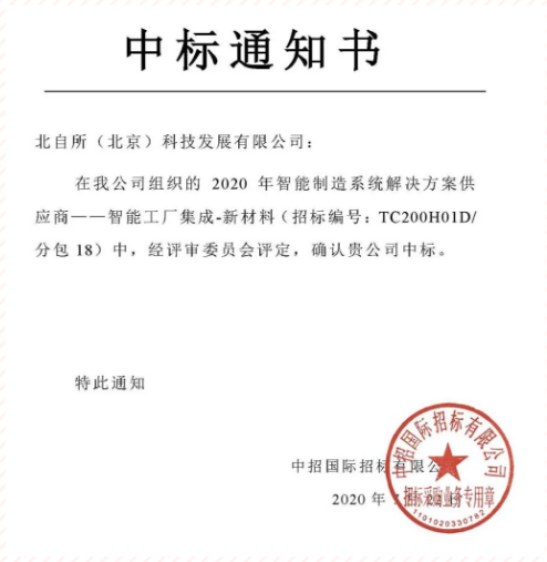 近日,工業和信息化部裝備工業司公示了“2020年智能制造系統解決方案供應商項目”招標結果,在經過對投標企業產品質量、技術實力、創新能力、服務水平、單位綜合實力等多方面嚴苛評比考核后,北自所(北京)科技發展有限公司(簡稱北自科技)從數百家投標企業中脫穎而出,成功中標“智能工廠集成-新材料”標段,是繼2019年中標“數字化車間集成-紡織”標段后,為數不多連續中標的企業之一。
