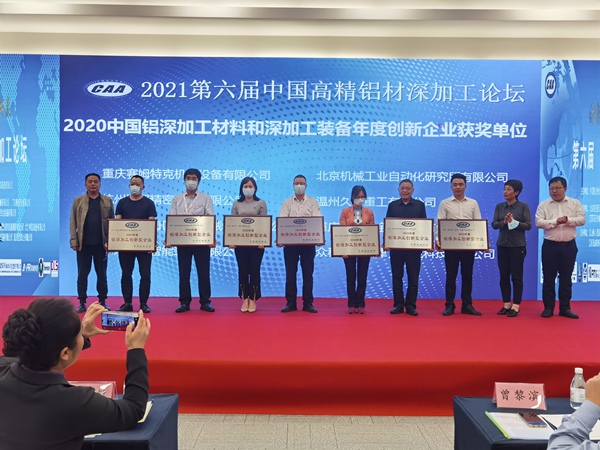 北自所獲得2020年度鋁深加工裝備年度創新企業榮譽