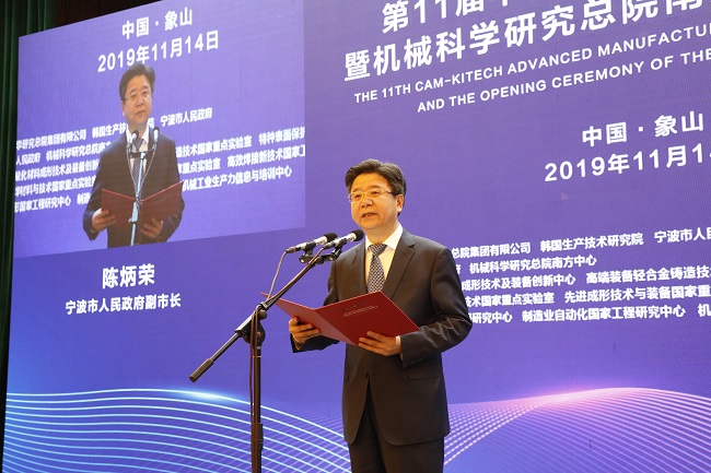 11月14日上午,機械科學研究總院南方中心在寧波象山揭牌。機械總院集團副總經理單忠德、寧波市副市長陳炳榮、象山縣委書記葉劍鳴、南方中心副主任龍偉民、集團產業發展部常務副部長孟祥宇出席揭牌儀式,儀式由寧波市政府副秘書長胡望榮主持。