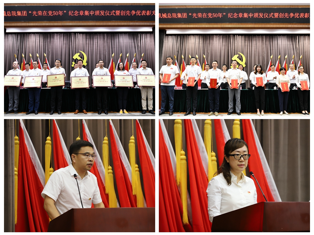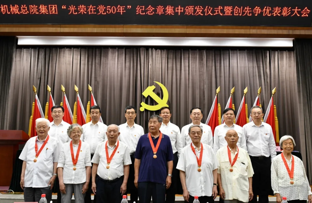 6月29日,機械總院集團在京召開“光榮在黨50年”紀念章集中頒發儀式暨創先爭優表彰大會,深入學習貫徹習近平總書記重要講話和指示批示精神,慶祝中國共產黨成立100周年,表彰先進、樹立典型,激勵引導各級黨組織和廣大黨員、干部員工開拓進取、扎實工作、創先爭優,以高質量黨建引領集團高質量發展,助力集團“十四五”開好局、起好步。集團黨委書記、董事長王德成出席會議并講話,黨委副書記、總經理王西峰主持會議,黨委副書記李玉鑫宣讀表彰決定,黨史學習教育中央企業第八指導組一行出席會議。