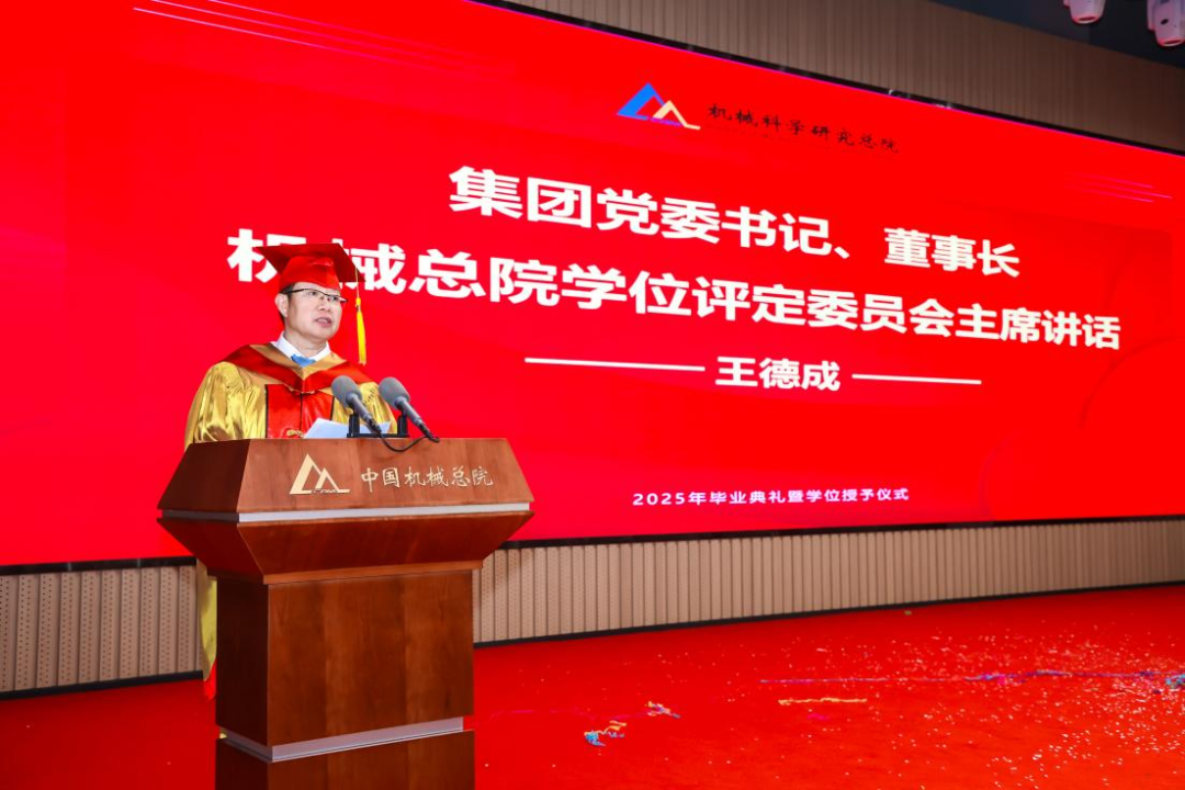 機(jī)械總院學(xué)位評(píng)定委員會(huì)主席、集團(tuán)黨委書記、董事長(zhǎng)王德成,集團(tuán)黨委副書記、總經(jīng)理孟祥宇,集團(tuán)黨委副書記、董事李玉鑫,集團(tuán)黨委委員、副總經(jīng)理王宇,機(jī)械總院學(xué)位評(píng)定委員會(huì)副主席、集團(tuán)副總經(jīng)理李愛國,集團(tuán)副總經(jīng)理姜超出席典禮,機(jī)械總院學(xué)位評(píng)定委員會(huì)委員、京內(nèi)外各二級(jí)單位領(lǐng)導(dǎo)、導(dǎo)師代表、研究生管理部門負(fù)責(zé)人、2025屆畢業(yè)生及家屬共計(jì)190余人齊聚一堂,共同見證這一重要時(shí)刻。典禮由機(jī)械總院學(xué)位評(píng)定委員會(huì)秘書長(zhǎng)、研究生院副院長(zhǎng)邊翊主持。