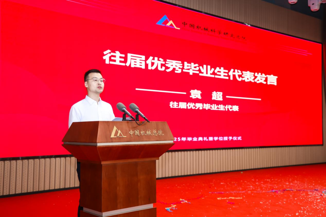 往屆優(yōu)秀畢業(yè)生代表袁超分享留院工作以來的科研經(jīng)歷與成長(zhǎng),鼓勵(lì)學(xué)弟學(xué)妹們“以‘敢為人先’為刃,在工業(yè)母機(jī)、工業(yè)軟件的賽道上破浪前行;以‘開拓創(chuàng)新’為炬,為中國制造業(yè)的高質(zhì)量發(fā)展點(diǎn)燃燎原星火。”
