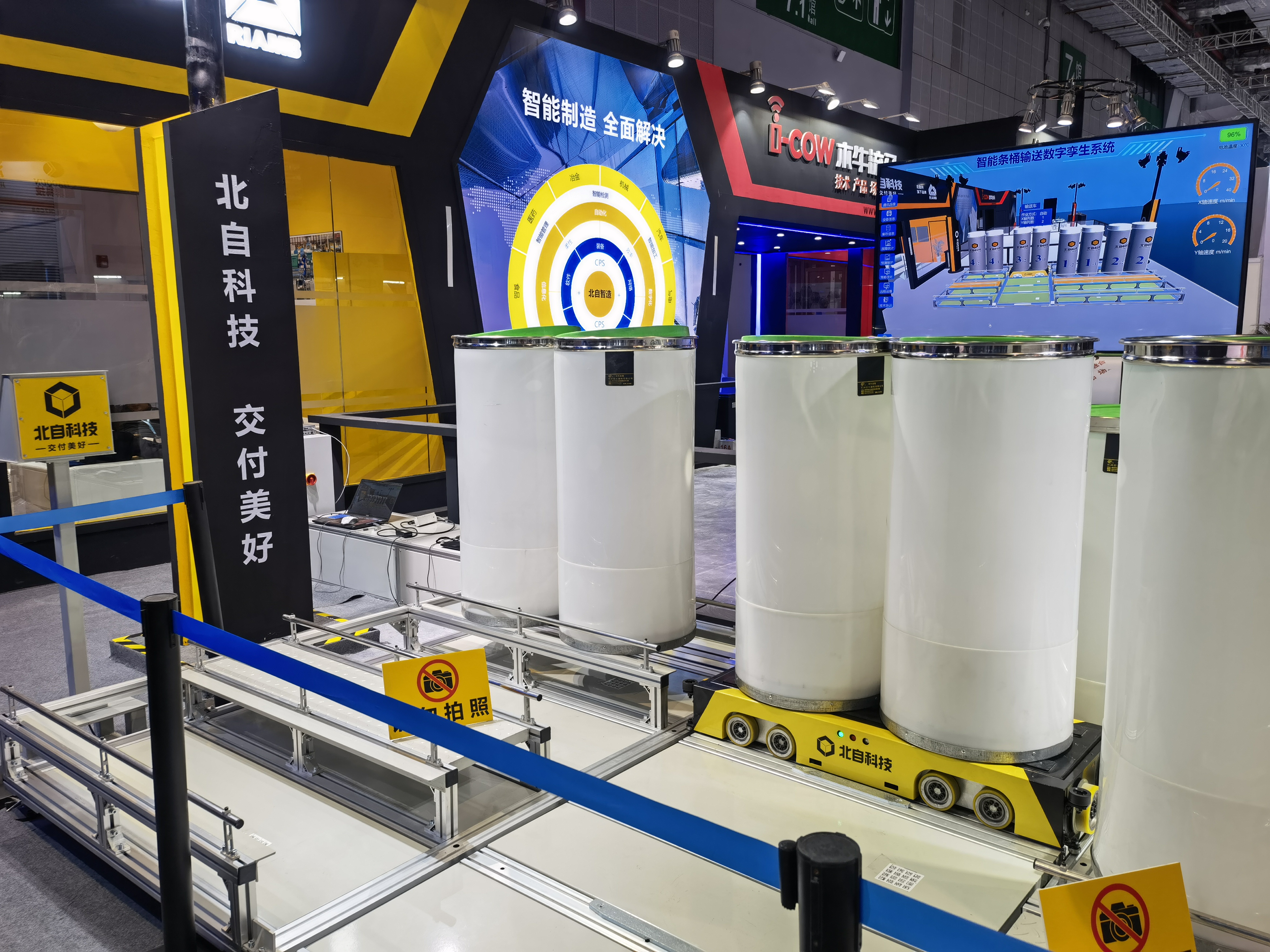 面對(duì)“5G、數(shù)據(jù)中心、人工智能”等新基建,需要關(guān)聯(lián)更多的數(shù)字化理念,制造裝備企業(yè)實(shí)現(xiàn)數(shù)字化才能將“工業(yè)4.0、云計(jì)算”真正實(shí)現(xiàn)。本次展會(huì)上,北自所(北京)科技發(fā)展有限公司(簡稱北自科技)推出基于數(shù)字孿生技術(shù)研發(fā)的棉紡條筒智能物流系統(tǒng)和其他智能裝備及解決方案,受到現(xiàn)場觀眾的廣泛關(guān)注。