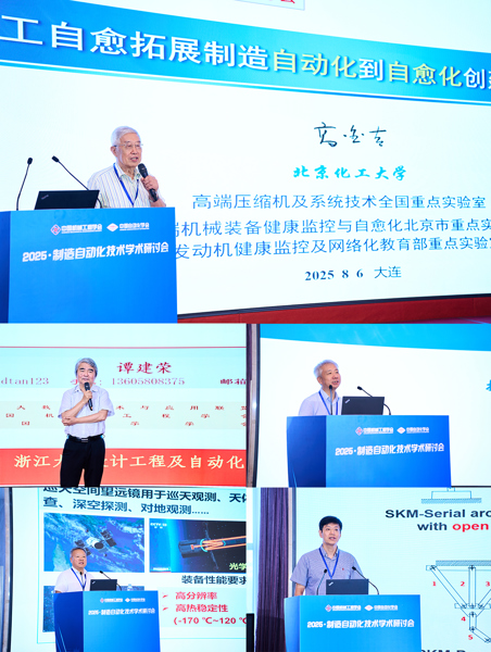 會議期間,北京化工大學高金吉教授、浙江大學譚建榮教授、西安交通大學梅雪松教授、大連理工大學康仁科教授、英國貝爾法斯特女王大學金巖教授,圍繞“人工自愈拓展制造自動化到自愈化創(chuàng)建新質生產力”“數控機床數字孿生”等方面分別作主旨報告。