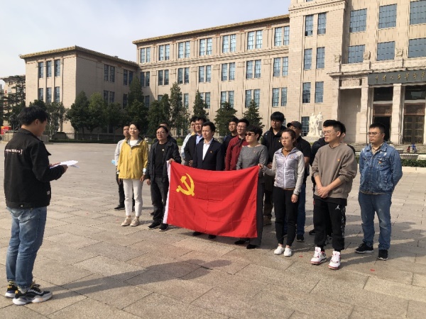在鮮紅的黨旗下,支部書記陳傳軍帶領(lǐng)新老黨員們進(jìn)行了集體宣誓,重溫了入黨誓詞。