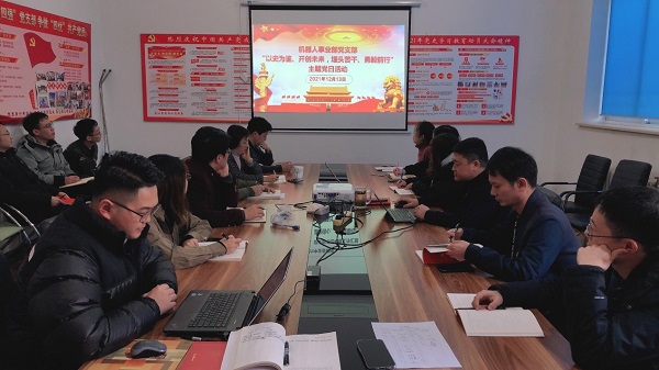 為深入學習貫徹黨的十九屆六中全會精神,自覺踐行初心使命,按照公司黨委部署要求,12月13日下午,機器人事業部黨支部聯合團支部開展“以史為鑒、開創未來,埋頭苦干、勇毅前行”主題黨日,共計17人參加,會議由黨支部書記趙宏劍主持。