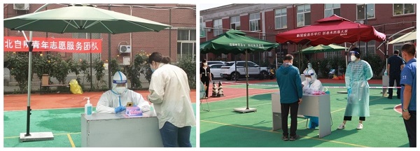 職工和青年積極加入到支援者隊伍中來,他們身穿防護服,認真核對身份證信息;他們手持擴音喇叭,耐心引導大家有序排隊;他們無懼風雨日曬,任憑汗水浸透全身;他們放棄假期周末,主動協助社區醫務工作者,為核酸檢測工作順利開展提供了堅強有力的保障。
